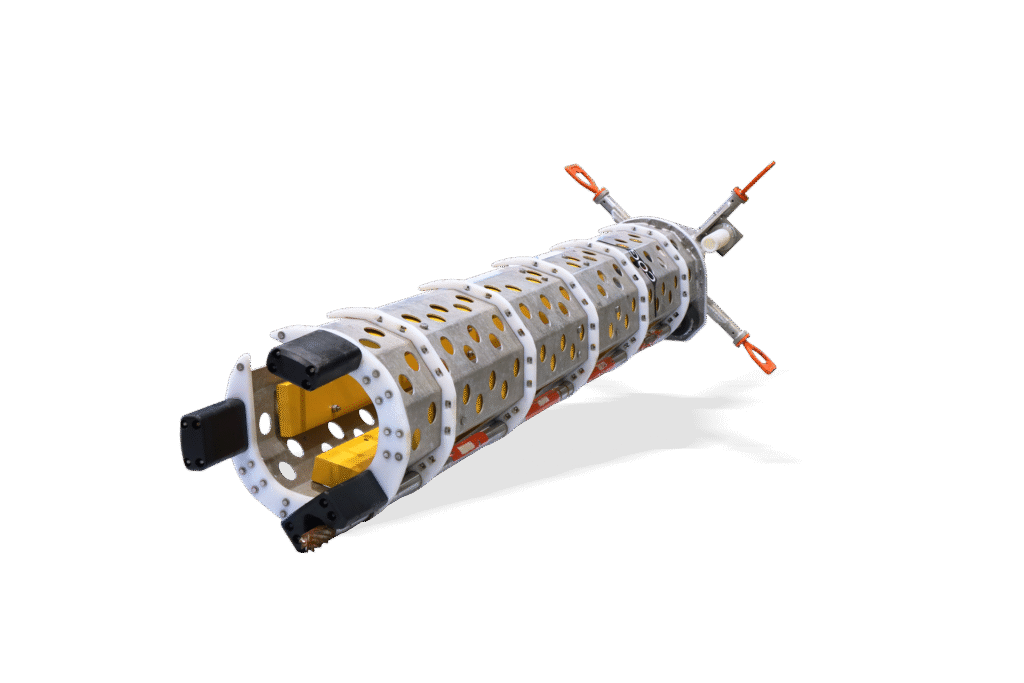| Customisation | Tools created to fit non-standard J-tube diameters. Low-weight aluminium/POM construction. The drill head is driven by a hydraulic motor, and the ROV manipulator rotates the entire tool around the diaphragm to perform the cut. Integrated guiding frame to protect bellmouth. |