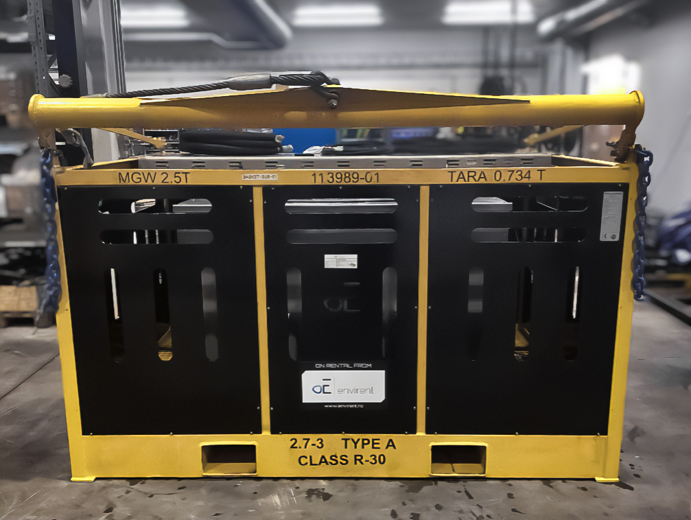 The flexible design means the pump and reservoir size can be swapped out for future jobs without building a new basket. The operation ran from summer to autumn 2023 and was completed without issues.
