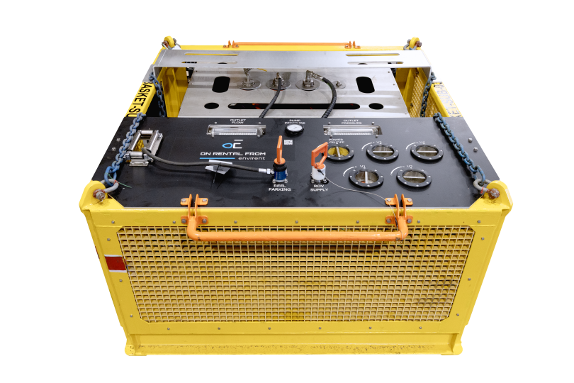 Two technicians from Envirent joined the vessel and supported the client throughout the ten‑day campaign in August. A factory acceptance test was carried out beforehand to ensure the reel and modules worked as expected. The reservoir basket has a 1100L fluid tank and an ROV‑friendly pump system that reduces costs and HSE risk by removing surface equipment supporting both pumping and flushing operations.